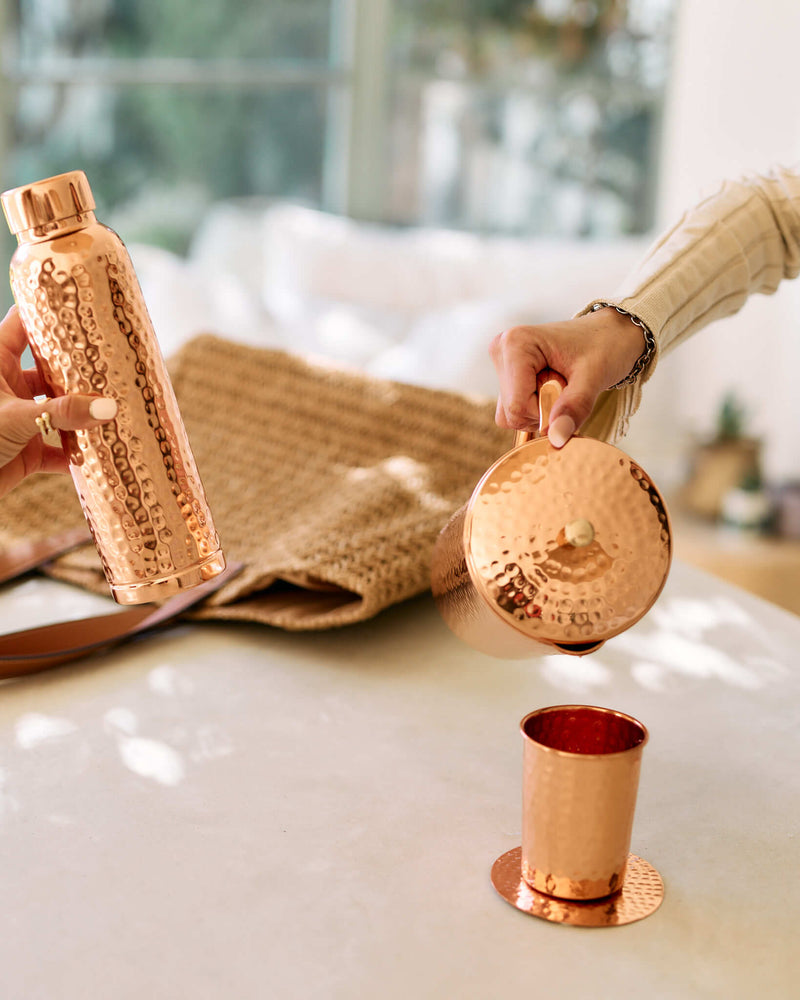 Handcrafted copper jug made by artisans in India